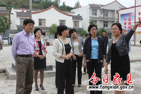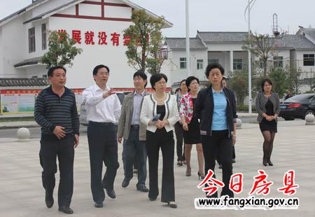 省委常委辦公室主任陳艷霞(中)一行在縣委副書(shū)記張慧彬(左二)的陪同下,視察軍店鎮(zhèn)雙柏村移民小區(qū)建設(shè)情況。