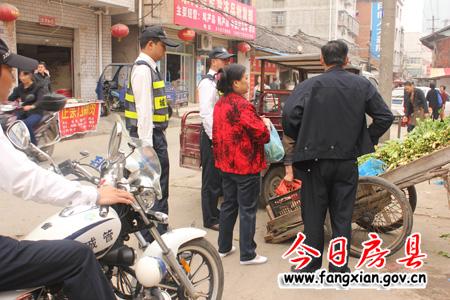 城管執(zhí)法人員在疏散攤點(diǎn)