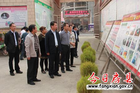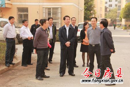 劉安民一行在城關(guān)鎮(zhèn)東關(guān)社區(qū)察看綜治管理宣傳欄