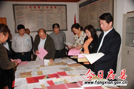 劉安民一行察看城關(guān)鎮(zhèn)東關(guān)社區(qū)綜治工作檔案