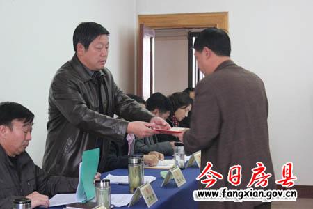 王啟云為新上任的副縣長王剛頒發任命書