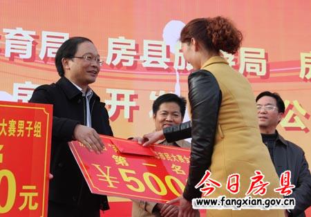 縣委副書記、代縣長蔡賢忠為男子組第一名選手頒獎