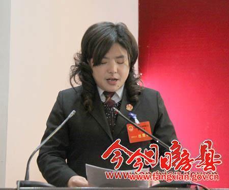 圖為縣人民法院院長肖玉玲向大會作房縣人民法院工作報告
