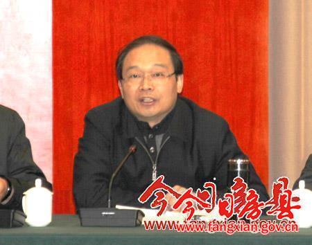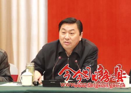 圖為縣委副書記、縣長蔡賢忠在會上講話