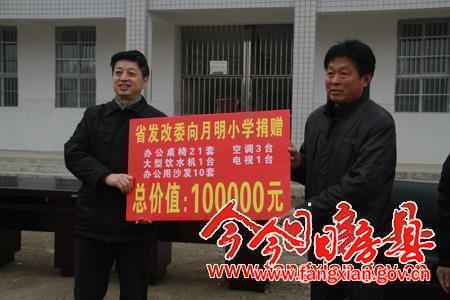 肖安明代表省發改委向月明小學捐助辦公用品
