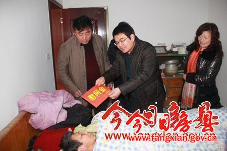 今日房縣網訊 記者 陳銳 報道: 1月17日,縣委常委、組織部長陳淵,縣人大副主任、鄧華明、龔舉成,深入縣光榮院、福利綜合廠、下西關、白土社區等地走訪慰問了12名退伍軍人、傷殘軍人、殘疾人和困難退休職工、勞模。