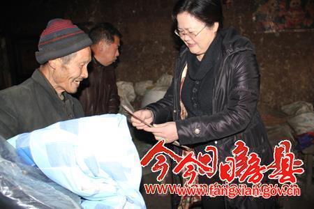 今日房縣網訊 記者毛俊杰 報道:新春佳節將至,農村困難黨員和群眾的生活牽動著縣領導的心。21日上午,縣委常委、宣傳部部長徐錦鳳深入五臺鄉看望慰問困難黨員和困難群眾,為他們送去慰問金和慰問品,把黨和政府的溫暖送到他們心坎上。