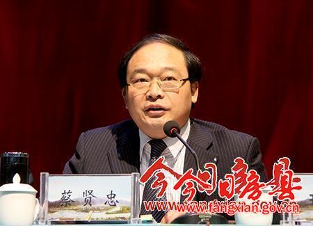 圖為縣長蔡賢忠主持會議并作總結(jié)講話