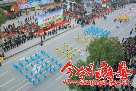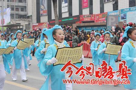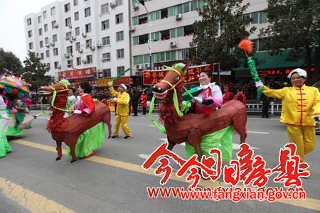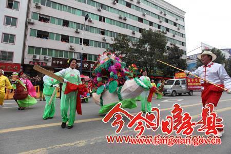 副縣長(zhǎng)林華主持啟動(dòng)儀式;縣委常委、宣傳部長(zhǎng)徐錦鳳致辭;縣委副書(shū)記張慧彬宣布“詩(shī)祖故里·美麗房縣”2014春節(jié)民間文藝大巡游活動(dòng)開(kāi)始。
