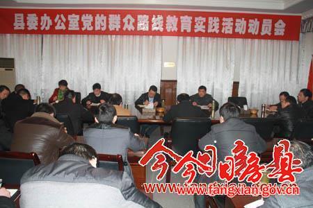 今日房縣網(wǎng)訊 記者戢太敏報(bào)道:25日,縣委辦公室召開黨的群眾路線教育實(shí)踐活動(dòng)動(dòng)員會(huì)??h委常委、縣委辦主任張永平要求,強(qiáng)化公仆意識(shí),發(fā)揮帶頭作用,努力在教育實(shí)踐活動(dòng)中走在前列??h委第六督導(dǎo)組參加會(huì)議并工作指導(dǎo)。