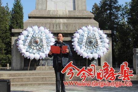 縣委副書記張慧彬在革命烈士紀念碑前致辭時說,組織縣委常委和縣四家班子領導緬懷革命先烈的豐功偉績,就是要提醒全縣黨員干部,學習革命先烈的崇高精神,時刻不忘先輩遺志,不忘黨員義務;要通過重溫入黨誓詞這種獨特的學習方式,不斷增強黨員干部的使命意識、責任意識和奉獻意識;要以自身實際行動積極踐行入黨時的誓詞,以革命先烈為榜樣,充分發揮共產黨員的先鋒帶頭作用,帶頭崇尚節約、反對浪費,帶頭艱苦奮斗、勤政為民,帶頭遵守紀律,清正廉潔,發揮黨員干部在教育實踐活動中的模范帶頭作用,為我縣經濟社會發展貢獻力量。