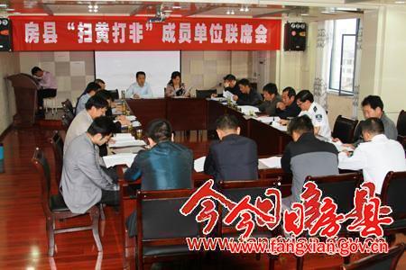 今日房縣網訊 記者 陳銳 報道: 16日,我縣舉行“掃黃打非”成員單位聯席會,安排部署今年全縣“掃黃打非”工作“清源”、“凈網”、“秋風”三大行動。縣委常委、宣傳部長徐錦鳳,縣委常委、政法委書記杜啟學出席會議。
