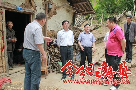 圖為縣委副書記柯大成一行在門古寺鎮(zhèn)楊岔山林場察看群眾房屋受損情況