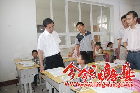 柯大成在回龍鄉十一小學了解學生學習生活情況