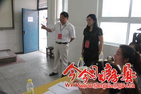今日房縣網訊 記者田蘭蘭 通訊員王隨軍 邱奎 報道: 28日,我縣2014年公開招聘農村義務教育學校教師面試工作在縣實驗小學舉行,140名已通過全省統一筆試和資格審查的考生角逐77個農村教師崗位。副縣長林華巡視了考場。
