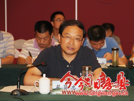 圖為縣長蔡賢忠在會上作匯報