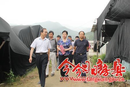 圖為市委副書記郭俊蘋(中)在縣長蔡賢忠(右)陪同下到湖北鹽業集團福綠源食用菌公司基地察看