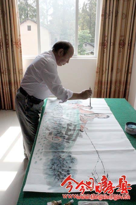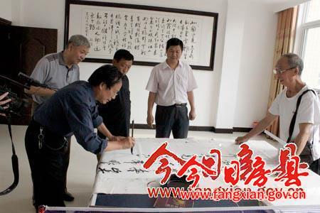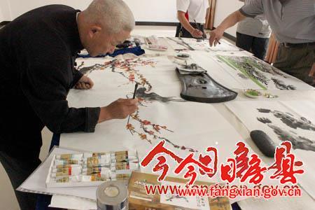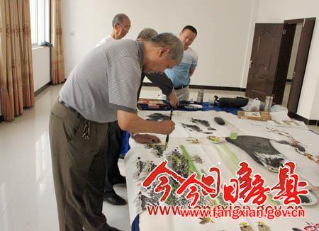 書畫筆會現場,各位書畫愛好者紛紛獻藝,當眾揮毫潑墨、妙繪丹青。個性張揚的行草、漂亮的山水風光畫、意境悠遠的水墨畫展示了書畫愛好者們各自的絕技和風采。大家以筆會友,探討書畫,相互交流,創作了多幅優秀的書法、繪畫作品。據介紹,此次筆會也是縣老干部局結合教育實踐活動,充分展示了老同志老有所為、老有所學、老有所樂、老有所成的精神面貌。