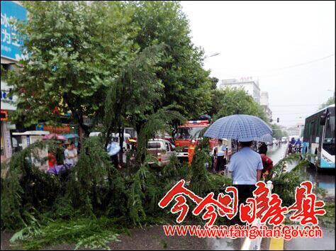 28日上午7時許,房陵大道九八家電超市門前,一棵20余米長的景觀樹,因暴雨襲擊,突然倒于路中,防護欄被打斷,致使交通受阻,成群結隊車輛不能通行。