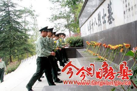 隨后,30名少先隊員獻唱中國少年先鋒隊隊歌,12名武警官兵邁著整齊的步伐分別代表縣委、人大、政府、政協、駐房部隊官兵、青少年學生向革命先烈敬獻花圈。柯大成、王啟云、陸毅、王家波緩緩走上紀念碑前,仔細整理挽聯,然后全體人員集體向為房縣革命發展事業英勇獻身的先烈們三鞠躬。