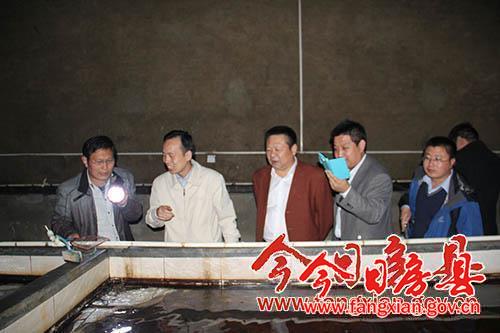 圖為朱耀春一行在五龍大鯢養(yǎng)殖基地調(diào)研