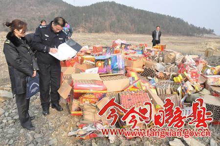 今日房縣網訊 通訊員 袁麗 黃武 吳江波 報道: 2月3日,房縣安監、公安等部門組織開展了2015年首次罰沒煙花爆竹集中銷毀活動,對前期收繳的價值6.8萬元非法煙花爆竹進行集中統一銷毀。