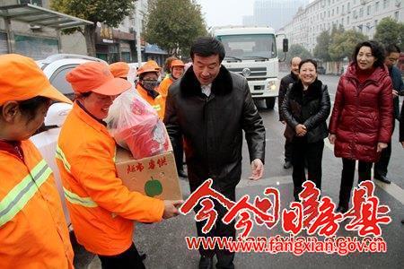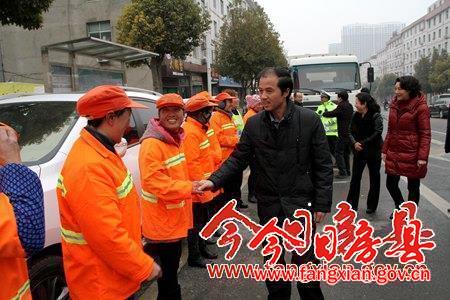 上午九點,柯大成一行首先來到武當路口,看望慰問了堅守在崗位的環衛工人,給他們送上節日的祝福和慰問品。柯大成握著環衛工人的手,親切地說:“新年好!今天是大年初一,天氣這么冷,你們還堅守在崗位上,給廣大群眾創造了一個舒適干凈的新春佳節,我代表縣委、政府感謝你們!”