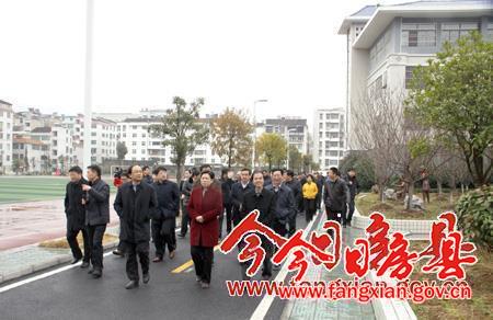 市領(lǐng)導(dǎo)和與會人員在東城小學(xué)參觀“綠色校園”建設(shè)