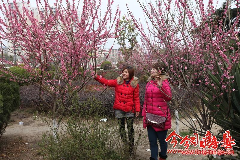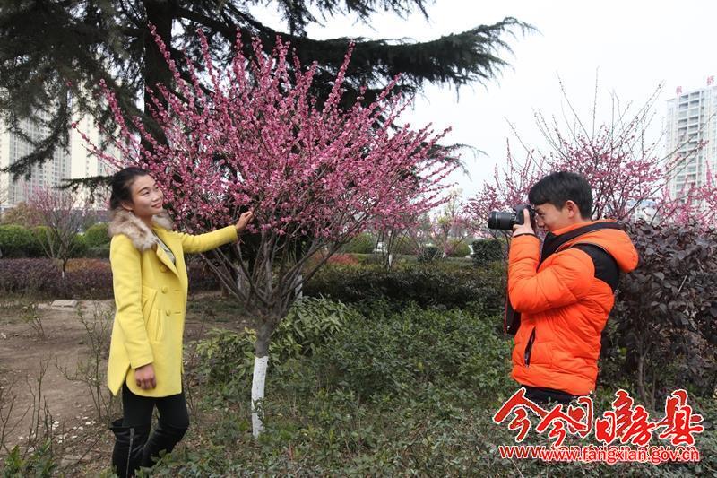 游客在西河廣場觀賞苦梅花。