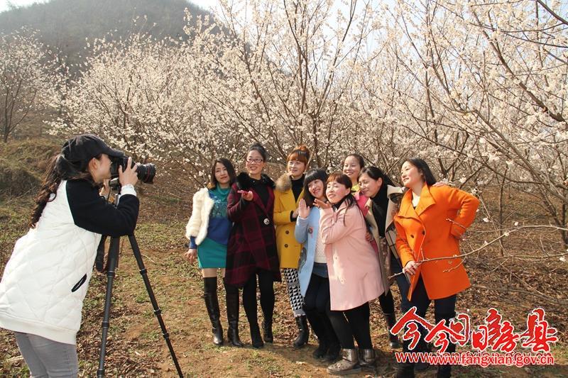 游客在城關鎮八里村櫻桃溝合影留念