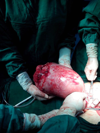 今年55歲的患者羅某是白鶴鎮農婦,去年初,她的腹部慢慢隆起,開始她以為自己“長胖”了而并未在意,但后來肚子越來越大,看起來就像懷胎十月的孕婦,才感覺到不對勁,于是來到縣婦幼保健院婦科就診,經B超檢查,發現其盆腔內有巨大包塊,幾乎占據患者整個盆腔。4月15日,醫生為其實施手術,從其體內取出包塊。據婦科主任柯鳳琴介紹,這是該院迄今為止成功摘除的最大包塊。