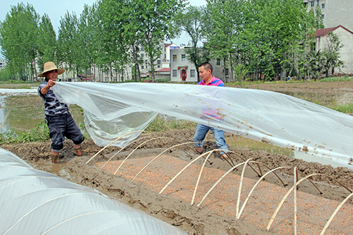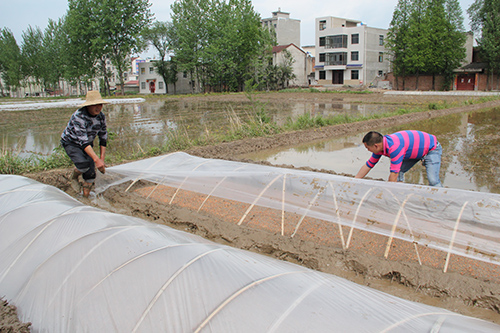 谷雨剛過,氣溫回升,城關鎮各地群眾搶抓農時,耙田整地,育秧備耕,田間地頭掀起春耕生產的熱潮,處處可見群眾忙碌的身影。2015年城關鎮水稻種植面積6000畝左右,目前已完成大部分育秧任務,預計5月中旬開始插秧。(陳銳 攝)