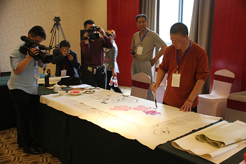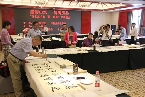 今日房縣網訊 記者 陳銳 報道: 5月10日,北京市文聯組織中國作協、中國書協、中國美協和北京市書協、美協文藝工作者來房縣送書畫下鄉,并在天悅溫泉舉辦了“墨韻山水、情滿房縣”為主題的“百名藝術家‘繪’房縣”書畫筆會。