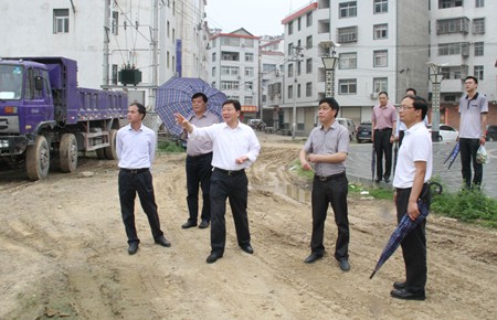 市委書記周霽一行在青峰鎮實地察看集鎮建設情況