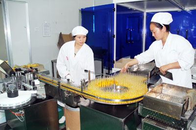 武當(dāng)動物藥業(yè)的注射劑車間貼標(biāo)崗位工人正在給產(chǎn)品貼標(biāo)