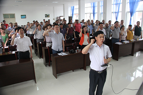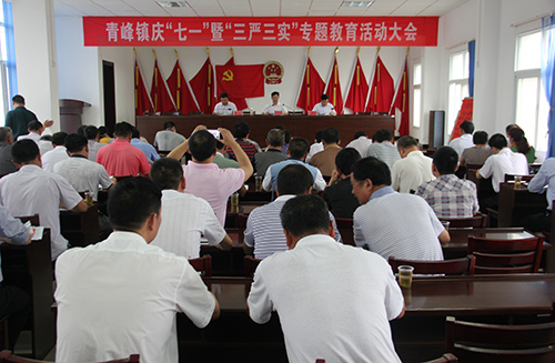 大會現場,青峰鎮黨委書記代新武帶領全體黨員干部重溫了《中國共產黨入黨誓詞》,在高昂的入黨宣言中,更加增強了所有黨員干部的光榮感、使命感,進一步激發黨員干部的先鋒模范作用和工作熱情。縣委副書記張慧彬就“三嚴三實”工作主題為大家上了一節黨課,借助“七一”這個神圣光輝的節日,告訴大家要堅守黨性,不忘宣言,時刻為黨的事業做出犧牲。同時,要深刻領會“三嚴三實”的豐富內涵和現實意義。