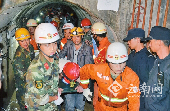 光坪錫礦塌方泥石流事故發生后,在專業救援人員的帶領下,武警、消防、邊防官兵和礦山救援隊人員爭分奪秒,輪流進入坑道分工協作開展救援工作。41小時后,礦井下傳來11名被困人員全部獲救的喜訊,等候在礦井口期盼成功消息的1000多名救援人員和現場群眾不約而同地歡呼鼓掌。兩名醫護人員隨身攜帶測量生命體征器具、營養液等隨救援隊伍進入礦井內,事先準備的11副擔架、11個氧氣袋也全部被救援隊伍帶進礦井內。