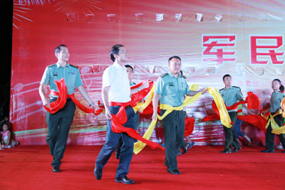 縣領(lǐng)導(dǎo)與駐軍官兵一起聯(lián)歡