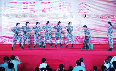 駐房某部女兵表演的小品《女漢子》