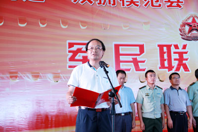 動(dòng)員會(huì)上,柯大成、蔡賢忠、張慧彬、王啟云、王家波、張延貴等縣領(lǐng)導(dǎo)對(duì)駐軍部隊(duì)官兵進(jìn)行現(xiàn)場(chǎng)慰問(wèn);縣委副書(shū)記張慧彬代表縣委、政府宣讀了《擁軍優(yōu)屬倡議書(shū)》;縣委常委、人武部部長(zhǎng)邵吉民代表駐軍部隊(duì)宣讀《擁政愛(ài)民倡議書(shū)》。