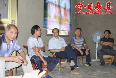蔡賢忠與青峰鎮(zhèn)張家河村村支書劉慶斌探討精準(zhǔn)扶貧工作
