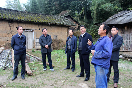 今日房縣網(wǎng)訊 記者 王瑋 報(bào)道:12日,縣委書記柯大成帶領(lǐng)縣財(cái)政、畜牧、農(nóng)商行等部門負(fù)責(zé)人深入軍店鎮(zhèn)中 村村,調(diào)研督導(dǎo)精準(zhǔn)扶貧精準(zhǔn)脫貧工作推進(jìn)情況。柯大成深入中村村何明號(hào)等貧困戶家中走訪慰問(wèn),了解工作落實(shí)情況。何明號(hào)是中村村建檔立卡的貧困戶,生豬、山羊養(yǎng)殖和農(nóng)作物種植是家庭主要經(jīng)濟(jì)來(lái)源。在何明號(hào)家,柯大成詳細(xì)察看了 他為擴(kuò)大養(yǎng)殖規(guī)模新建的標(biāo)準(zhǔn)化羊舍,了解他家的山羊養(yǎng)殖現(xiàn)狀及養(yǎng)殖過(guò)程中遇到的問(wèn)題和困難, 傾聽了他家今后的產(chǎn)業(yè)發(fā)展打算。柯大成鼓勵(lì)他,一定要堅(jiān)定脫貧致富的信心,抓住精準(zhǔn)扶貧的機(jī) 遇,通過(guò)發(fā)展產(chǎn)業(yè)盡快脫貧過(guò)上好日子。