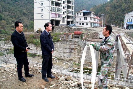 柯大成一行在尹吉甫鎮(zhèn)實地察看榔口大橋建設進展情況