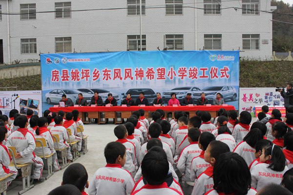 據悉,姚坪鄉東風風神希望小學由東風公司捐資93萬元,房縣政府配套157萬元在原姚坪鄉小學基礎上擴建而成。此次擴建工程中,新建了學生食堂,學生宿舍綜合樓902平方米,加固維修教學樓860平方米,新建廁所80平方米。工程于2013年12月開工建設。