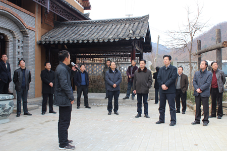 孫璜清(前排右二)一行在市、縣領(lǐng)導(dǎo)陪同下考察黃酒村