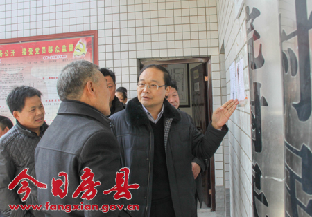 蔡賢忠查看萬峪河鄉(xiāng)中院村貧困戶張榜公示表