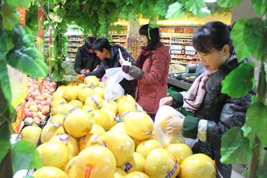 28日,記者在美樂多購物廣場看到,琳瑯滿目的商品擺滿了貨架,米面、油糧、果蔬、飲料酒水以及一些新上架的年貨禮包品種豐富,可滿足消費者不同的需求。據該購物廣場副總經理許祖建介紹,為了滿足市民的購物需求,他們提前兩個多月就開始規劃春節期間的物資儲備,目前各種物資供應充足。而對于市民最關心的年貨價格,許祖建表示:“我們現在正在開展‘購物抽大獎’和‘辭舊迎新,超值奉送’等打折促銷活動,價格方面會給到最實惠的,讓顧客們開開心心的買到自己想買的東西。”