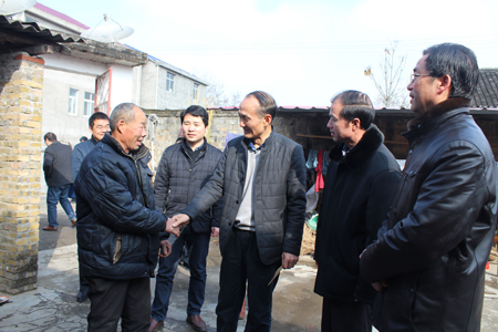 今日房縣網(wǎng)訊 記者 王瑋 報道:春節(jié)臨近,2日,市政協(xié)主席陳家義率市政協(xié)扶貧工作隊來到化龍堰鎮(zhèn)高橋村,調(diào)研精準(zhǔn)扶貧工作,走訪慰問生活困難老黨員和群眾,向他們送去年貨和新年的祝福,傾聽民聲傳遞溫暖。市政協(xié)副主席、縣委書記柯大成,市政協(xié)秘書長李躍,縣政協(xié)主席張慧彬,縣委常委、組織部長陳淵,縣政協(xié)副主席張富華參加慰問活動。