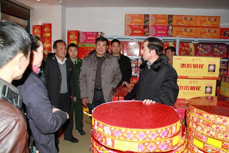 在房陵大道的幾家煙花爆竹銷售點,柯大成向店主詢問煙花爆竹銷售和儲存情況。他希望店主能夠在做好生意的同時,提高安全意識,不銷售“三無”煙花爆竹產(chǎn)品。柯大成要求,各相關(guān)部門要抓好春節(jié)期間的安全生產(chǎn)工作,強(qiáng)化對煙花爆竹生產(chǎn)、運(yùn)輸、儲存、銷售和燃放等各環(huán)節(jié)的安全監(jiān)管,嚴(yán)厲打擊無證非法生產(chǎn)、非法運(yùn)輸?shù)刃袨椋乐购投沤^安全事故發(fā)生,確保全縣人民度過一個安定、祥和、歡樂的春節(jié)。