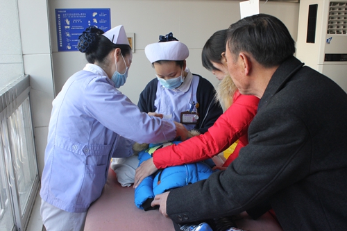 圖為縣人民醫院輸液室護士胡許文娟、昝繼平正在為患者輸液治療。